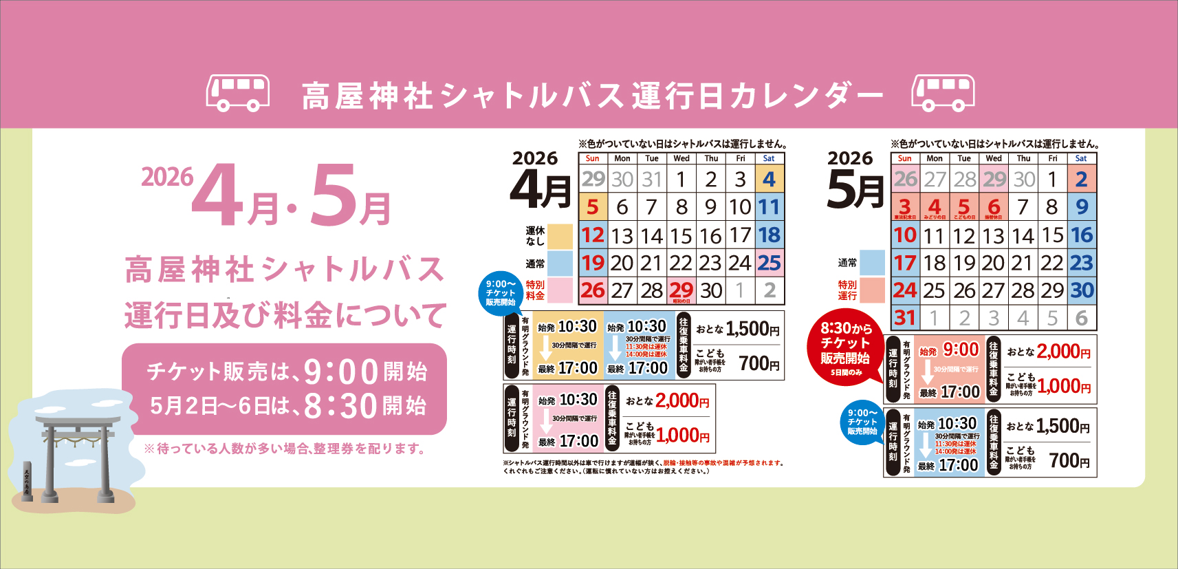 ※高屋神社本宮やシャトルバス車内での忘れ物や落とし物が増えております。下山の際は、お荷物の確認を再度お願いいたします。