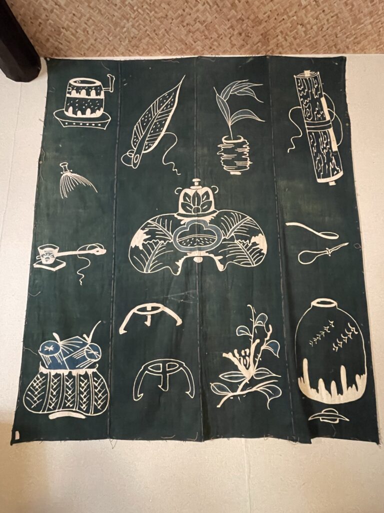 お店では、古布を使用したパッチワーク品や讃岐一刀彫等の手作り木工品を取り扱っています。