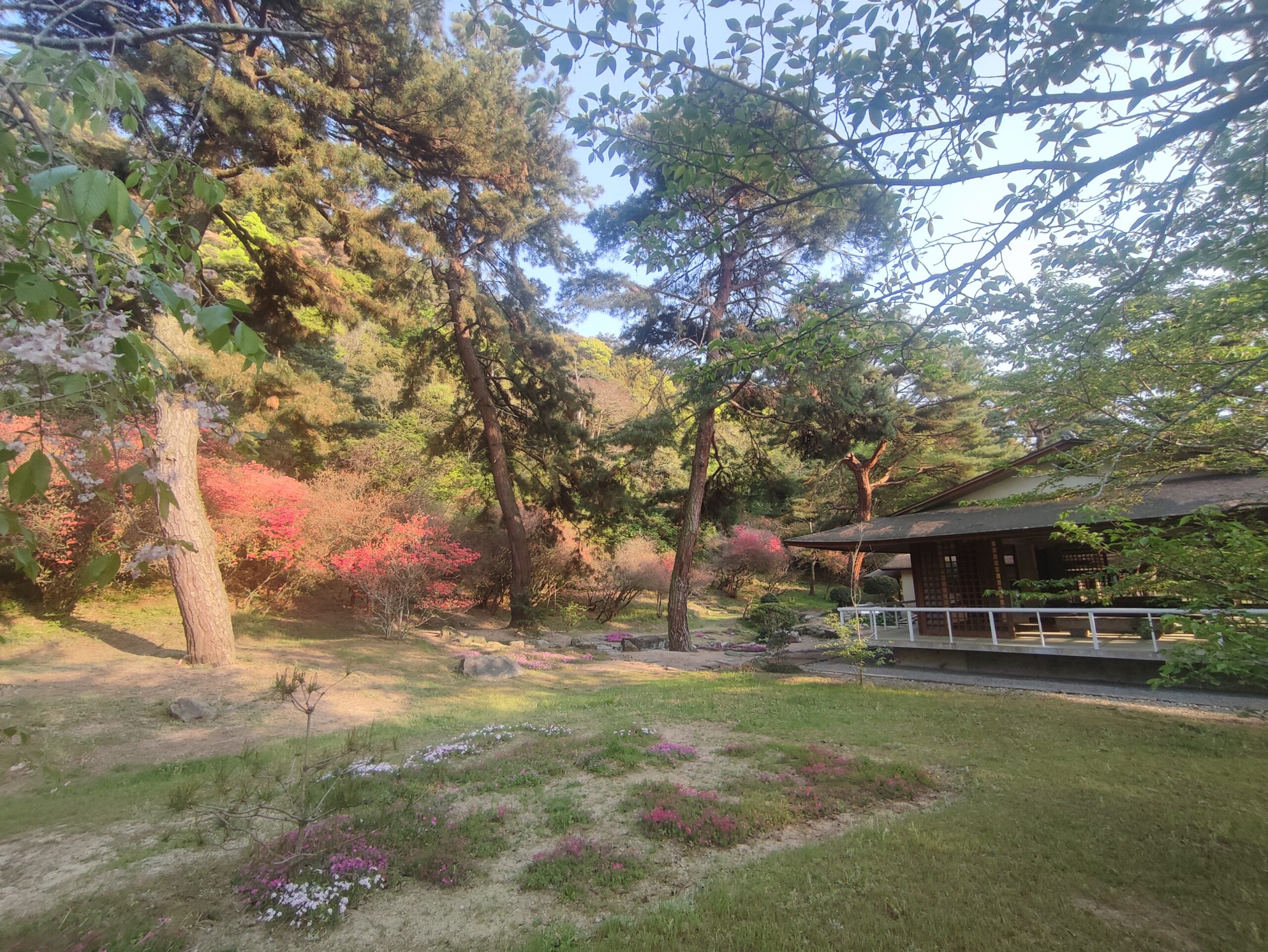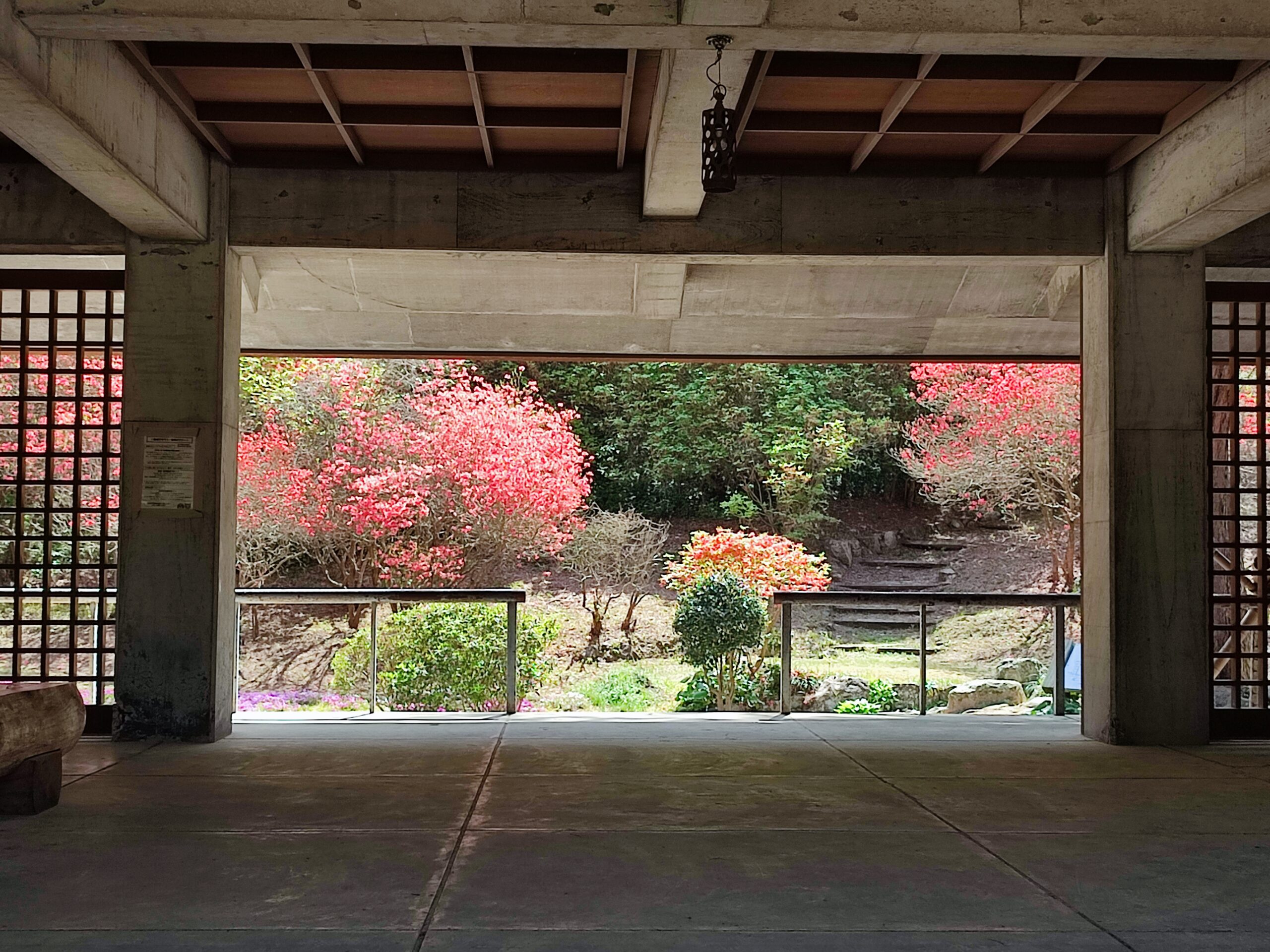 琴弾公園内にある浴日館(よくじつかん)休憩所の裏山に咲き誇るツツジの花の色は真紅に近い朱色一色で、他のツツジではあまり見かけない独特の色合いをしています。例年4月中頃からが見ごろで、琴弾山の新緑とのコントラストが特に美しく目に焼きつき、訪れる観光客を楽しませてくれます。また、雨上がりなどで出来る水たまりが鏡のように景色を写し、運が良ければ水たまり越しにとても綺麗な姿を見ることもできます。