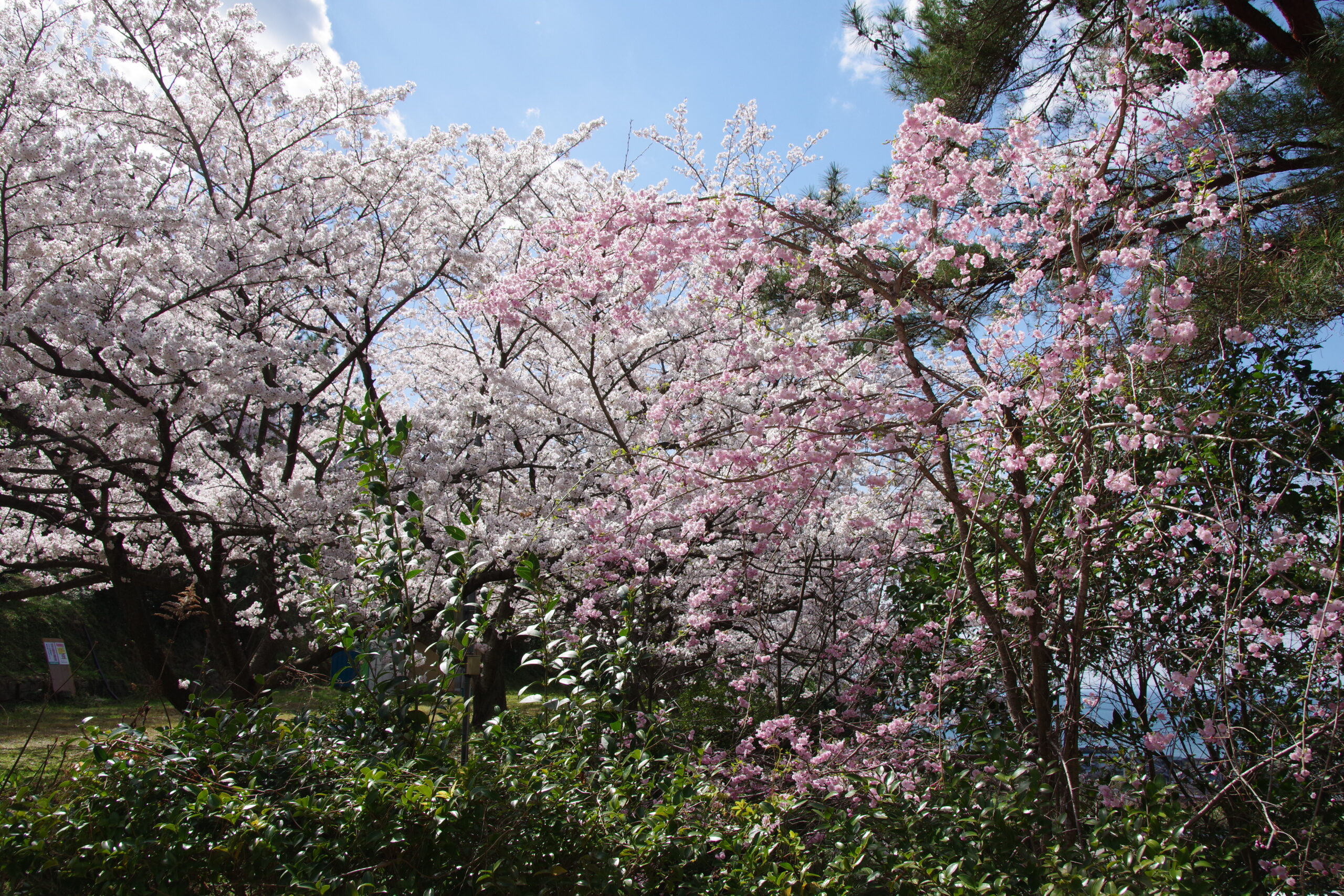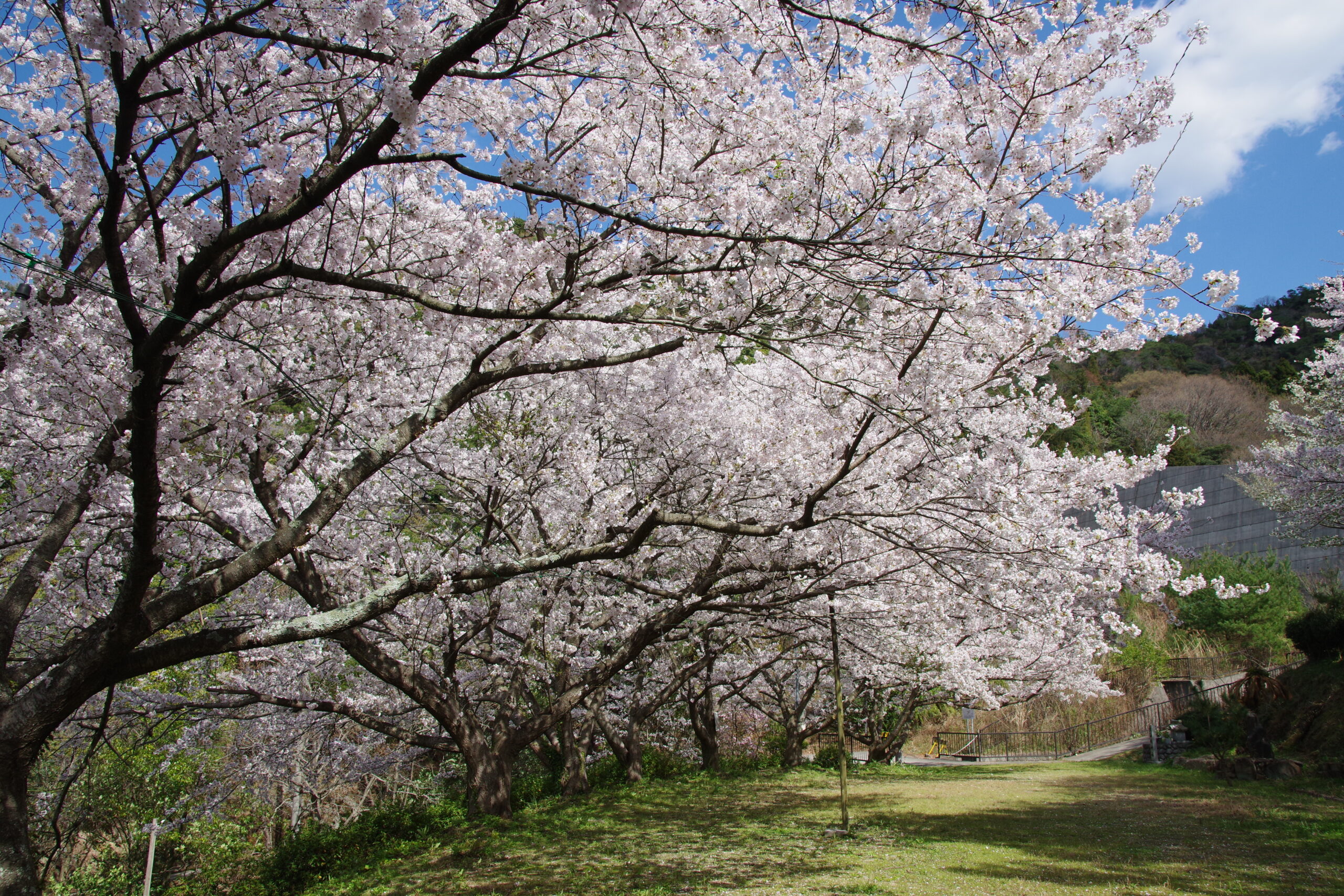 豊浜町箕浦にある七福公園(しちふくこうえん)は、高松自動車道(高速道路)の豊浜サービスエリアの山側に位置し、身近な憩いの場として地元の皆に長く愛されている公園です。例年4月上旬にソメイヨシノや枝垂れ桜など約50本の桜が咲き誇ります。瀬戸内の海、燧灘(ひうちなだ)を望む景観と一緒にお楽しみください。