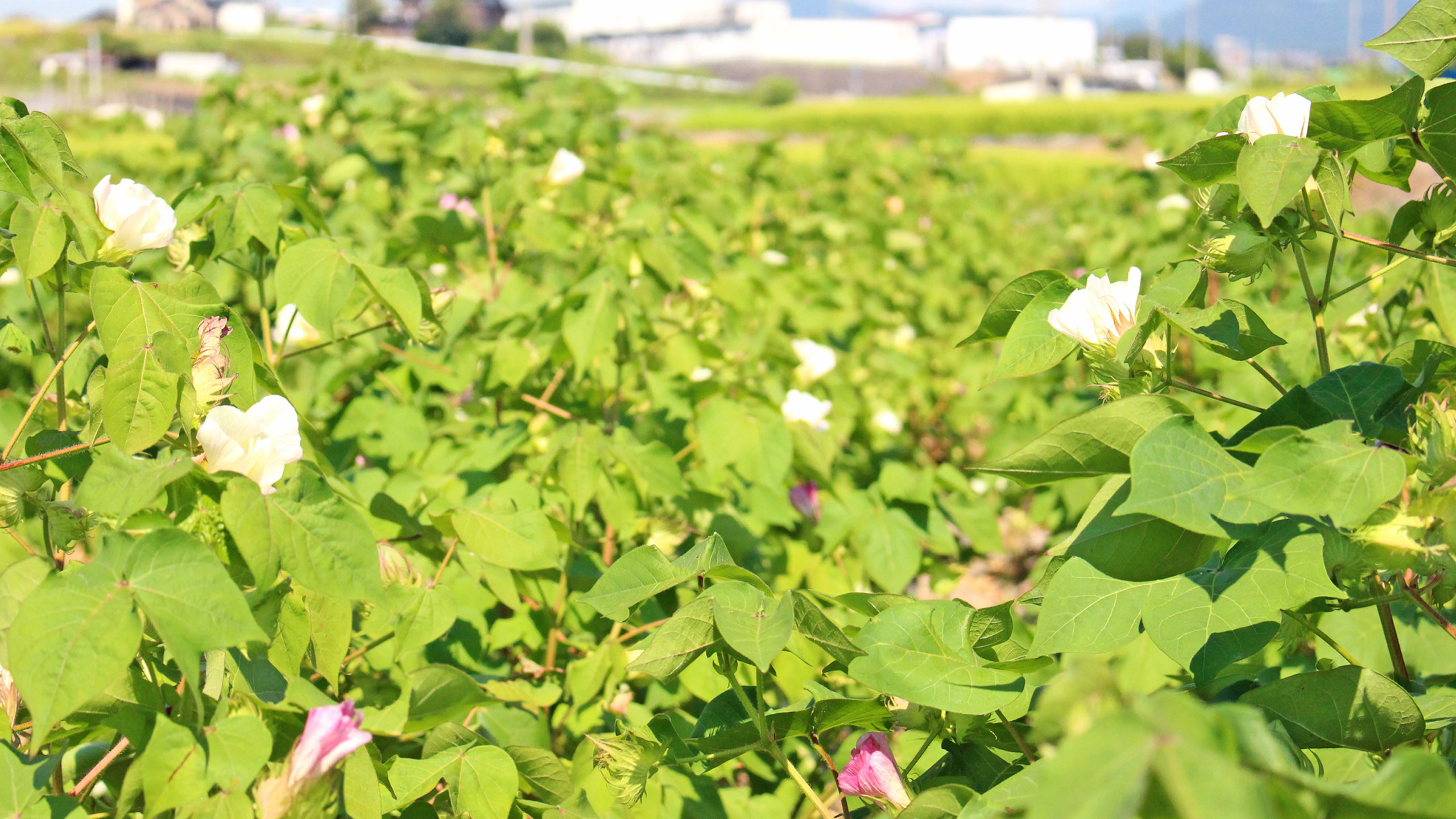 わたは讃岐三白の一つで、明治の初めごろまでは盛んに栽培されていました。今でも豊浜町和田道溝地区の畑で、可憐なわたの花を見つけることができます。わたは7月〜8月に開花し50日~60日くらいで青い実が大きくなり、やがて10月ごろにはじけてコットンの素材になります。なかなか見る機会のなくなったワタの花を是非ご覧ください。