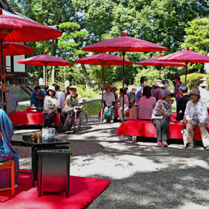 萩原寺会場では、今年も約2500株の萩の花が皆さまをお迎えしてくれ、満開の萩の花に囲まれて一服のお茶を楽しむことができます。