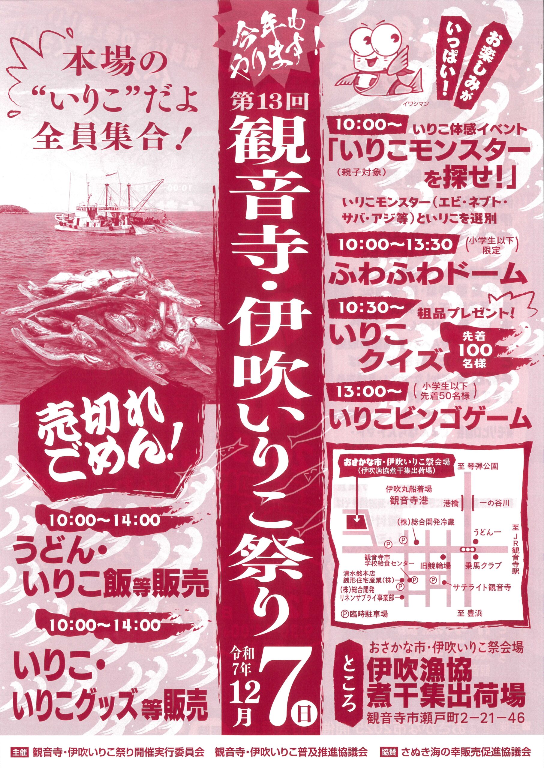 「第13回 観音寺・伊吹いりこ祭り / おさかな市2025」が12月7日(日)に開催されます。