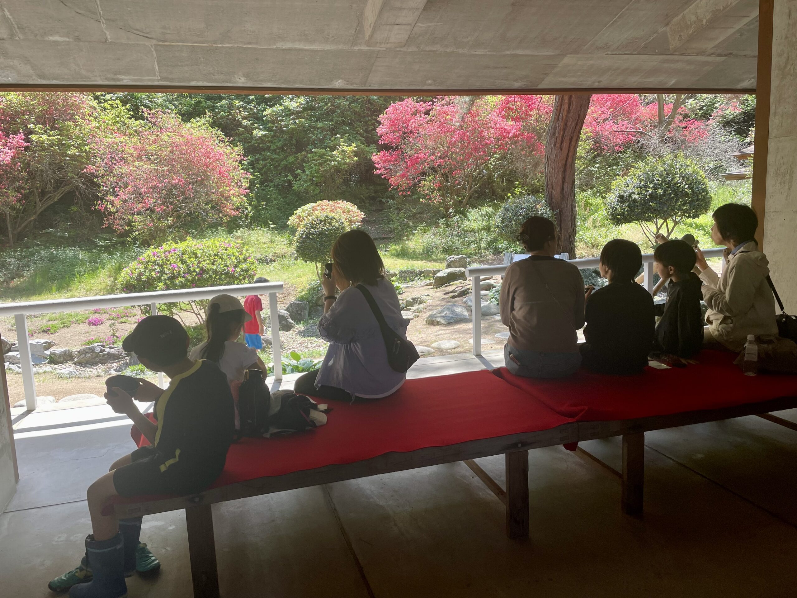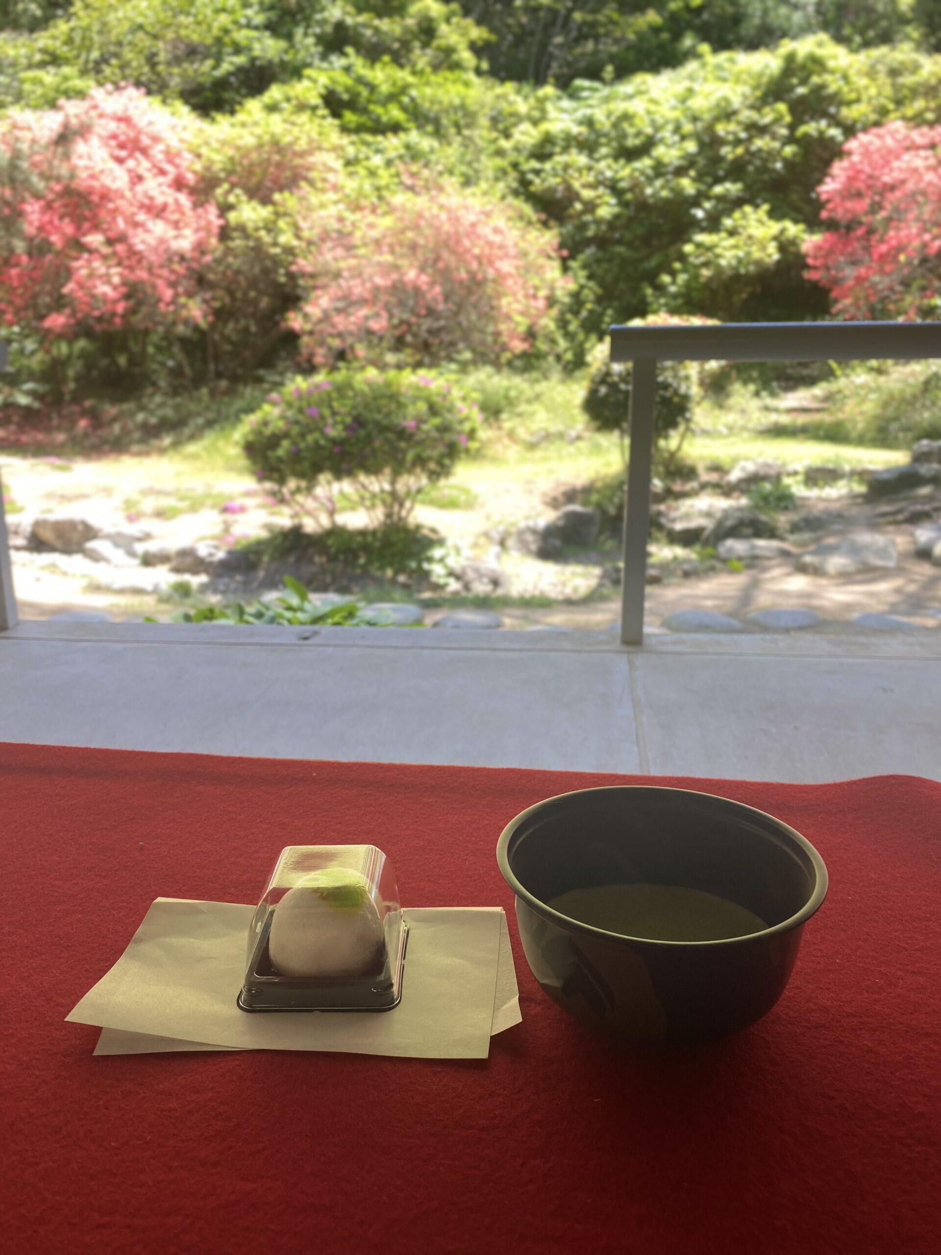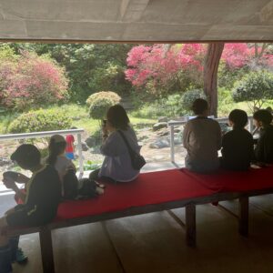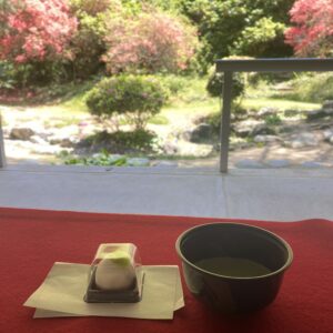 観音寺市の代表的な観光名所である「銭形砂絵」の春季砂ざらえに合わせて、水琴窟やヤマツツジのある琴弾公園浴日館休憩所でお抹茶の接待を行います。砂ざらえに参加される方や一般観光客の方々を対象に、新緑に囲まれて一服のお茶とお茶菓子のお接待で憩いのひと時を過ごしていただきます。