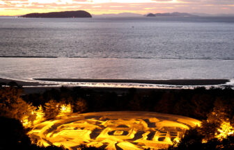令和6年12月2日~令和7年1月15日まで、銭形砂絵「寛永通宝」が黄金色に輝きます。