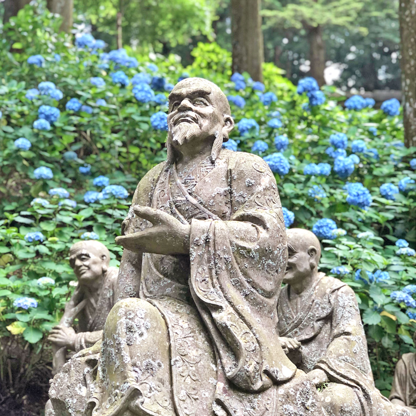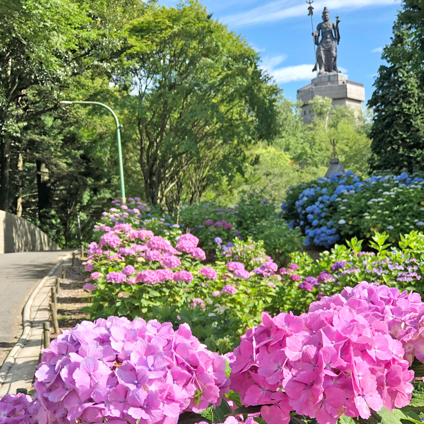 紫陽花といえば、6月など梅雨の時期に満開を迎える花ですが、四国霊場66番札所の雲辺寺は、標高911mにあり平地と比べると約7度ほどの気温差があります。そのため、四国では珍しく約3万株の紫陽花の見頃も平地より遅れて、7月上旬から8月上旬まで楽しむことができます。避暑を兼ねて五百羅漢を囲む見事な「真夏のアジサイ」の中を散策してみませんか。
