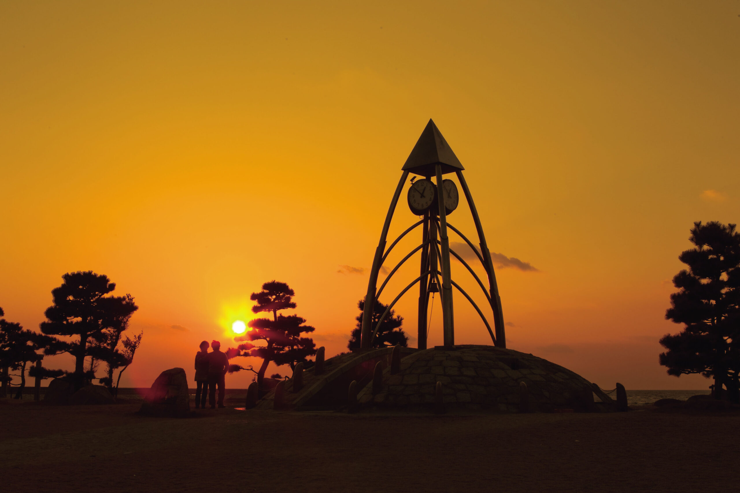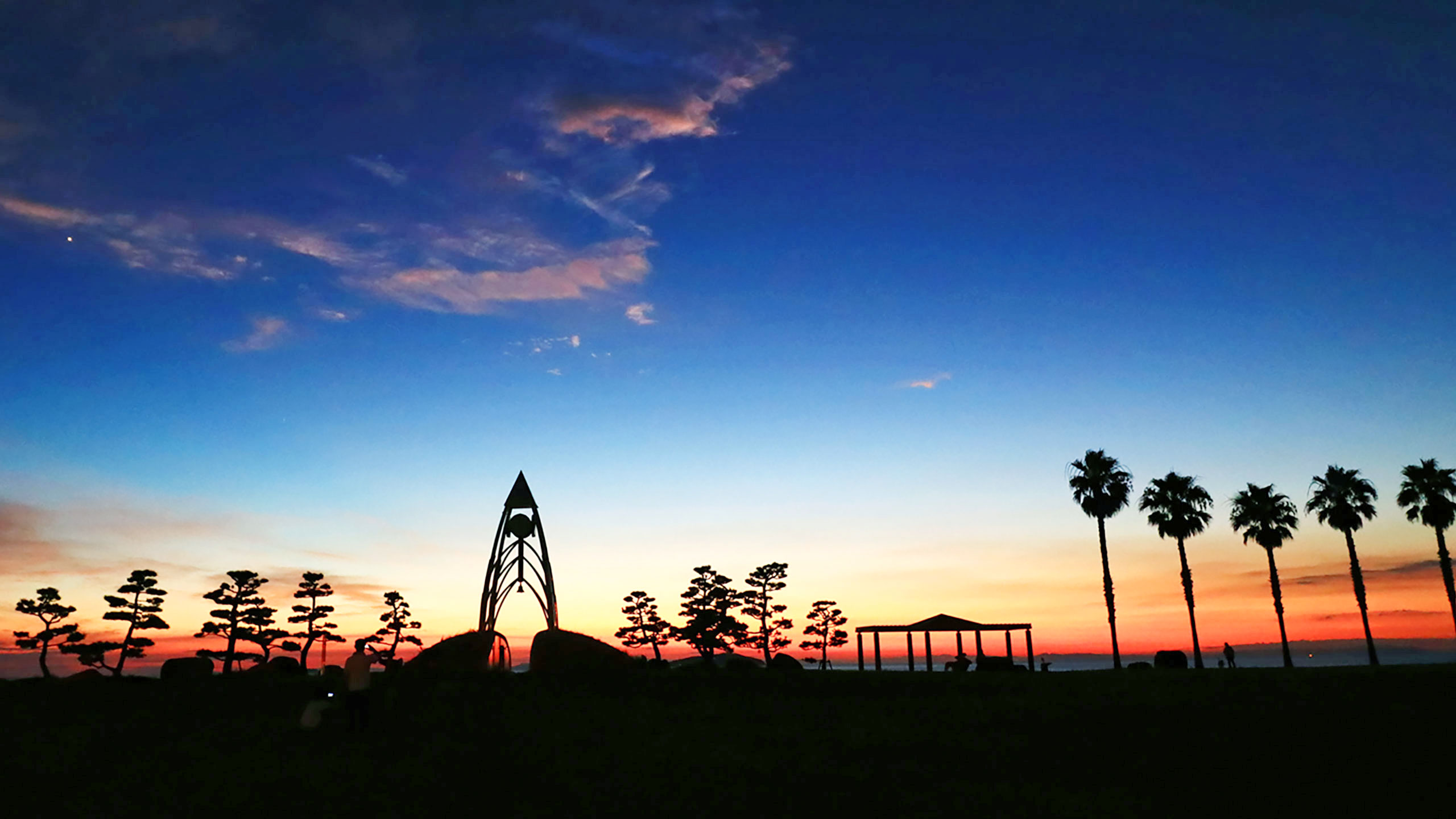 ドリームタワーは、宇宙に向けて飛び立つロケットをイメージしており、7月20日にその中心に夕日が沈むように設計されています。また、芝生広場にあるこの鐘をならすと、幸せになれるといわれていて、恋人の聖地に認定されるなど若いカップルがたくさん訪れる場所でもあります。