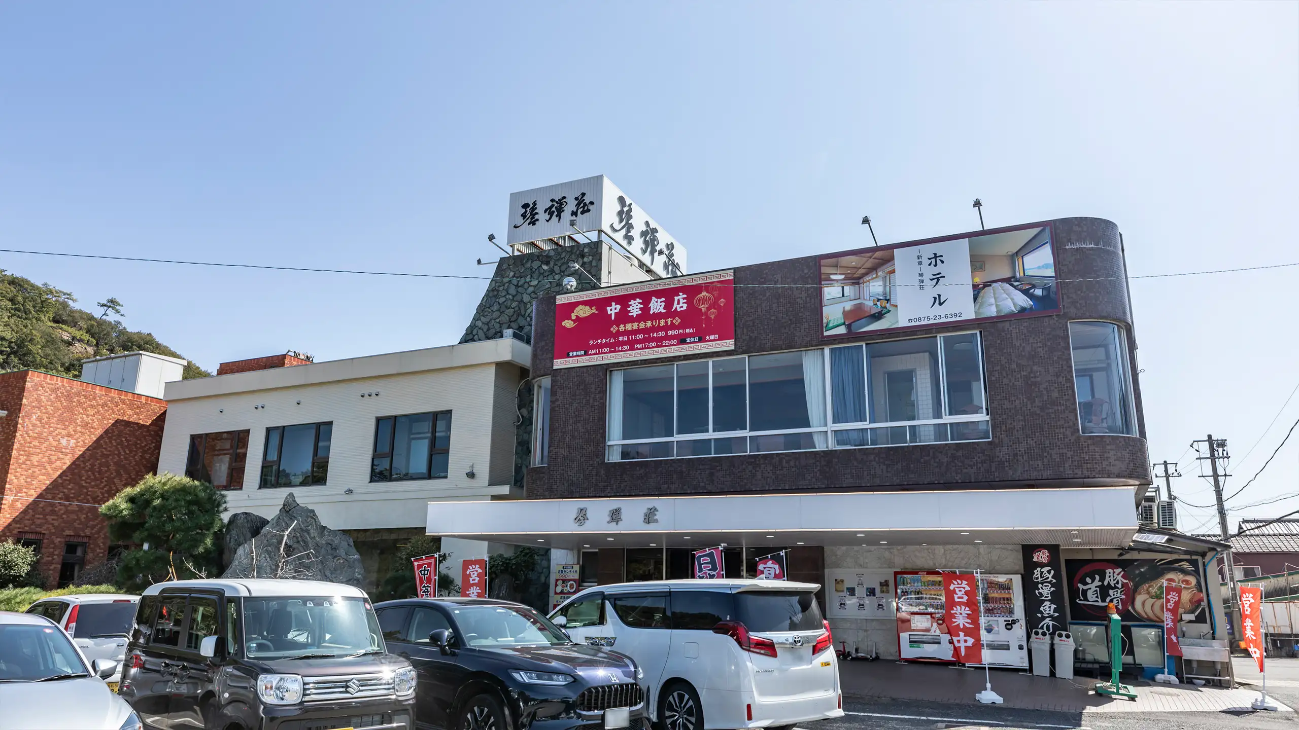 ホテルの中にある琴弾荘中華レストランでは本場の中華料理、ゲンコツ並の大きさのからあげ、国産鰻めし、銭形カプチーノ、鳥居カプチーノが楽しめて大人気です!少人数の宴会から200人の宴会予約大歓迎ですアラカルトから1380円のビールセット、990円のランチ、1450円〜の定食、4480円の中華懐石、3580円〜9980円までの高級コース料理等々、どんな場面でも幅広くご利用いただけます♪火曜日の定休日を除く年中無休で営業しています。