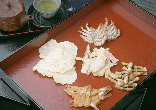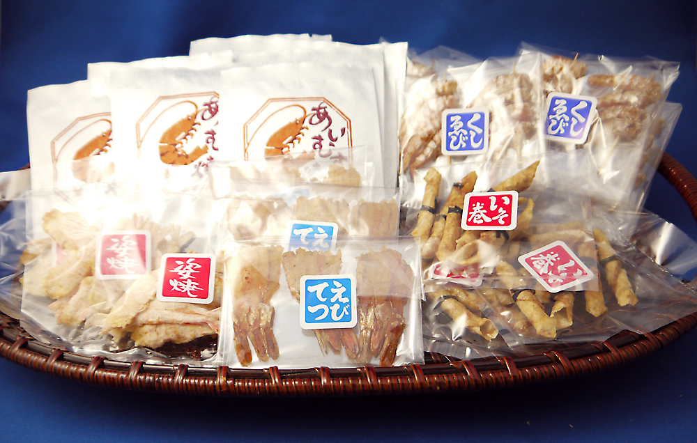 満久屋豊浦商店(まくや とようらしょうてん)は、明治10年創業のえびせんべいの老舗店です。看板商品の「あいむす焼」は、瀬戸内海は燧灘(ひうちなだ)でとれた新鮮なえびだけを材料に使い蒸し焼きにしており、えび自体の素材が良いのでとても上品な風味と味がひきだされています。一枚一枚手焼きで無添加、無配合なのでそのまま食べても美味しいですが鍋料理やすき焼きの具としても楽しめるのでおすすめです。